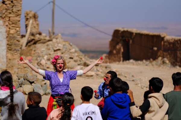 Die ROTE NASEN Künstlerin nimmt regelmäßig an Emergency Smile-Missionen teil – das letzte Mal war sie im Februar 2024 auf Mission in Marokko.