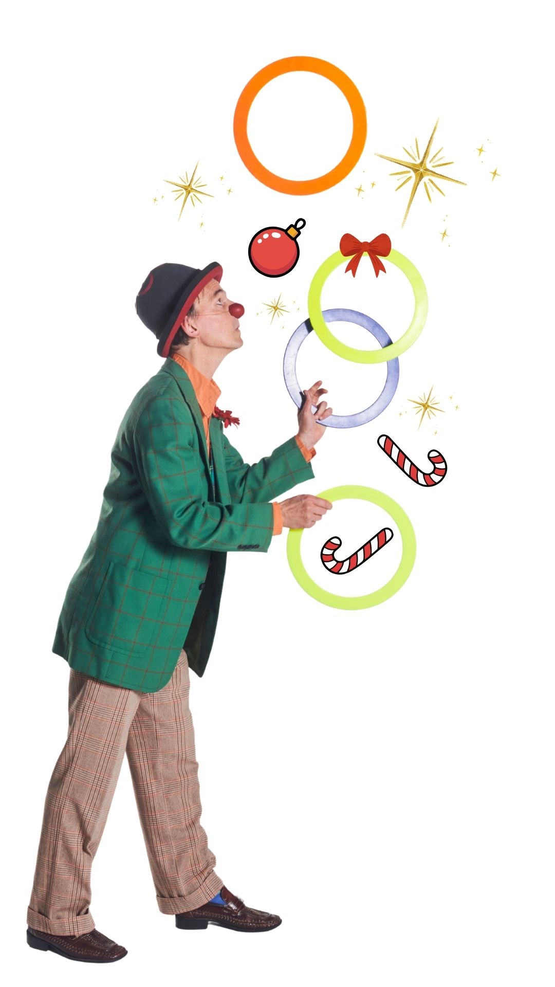 ROTE NASEN-Clown Bartusch hat sich bereits Gedanken gemacht: Er hat die Gelegenheit genutzt, mit allerlei Weihnachtsschmuck zu jonglieren – auch wenn sein Baum jetzt ein bisschen nackt aussieht.