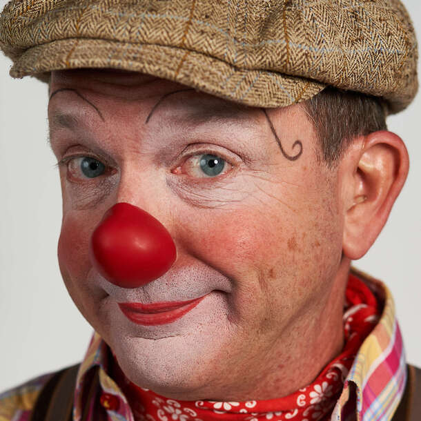 Moritz stolpert mit seinen großen Schuhen manchmal gegen Türen oder rutscht plötzlich vom Stuhl – aber wenn er seinen Koffer öffnet, dann wirbelt er Bälle und Keulen gekonnt durch die Luft und bringt das Diabolo zum Leuchten. Die Leute staunen über seine Zaubereien, und zusammen mit Clownpartnerin Mimi singt er gerne auch mal feine Duette am Bette. Seifenblasen verwandeln sich in seiner Hand in Zaubermurmeln, und beim Abschied bleibt eine Luftballonblume als Erinnerung zurück – aber bitte nicht anschneiden, das wäre schade!