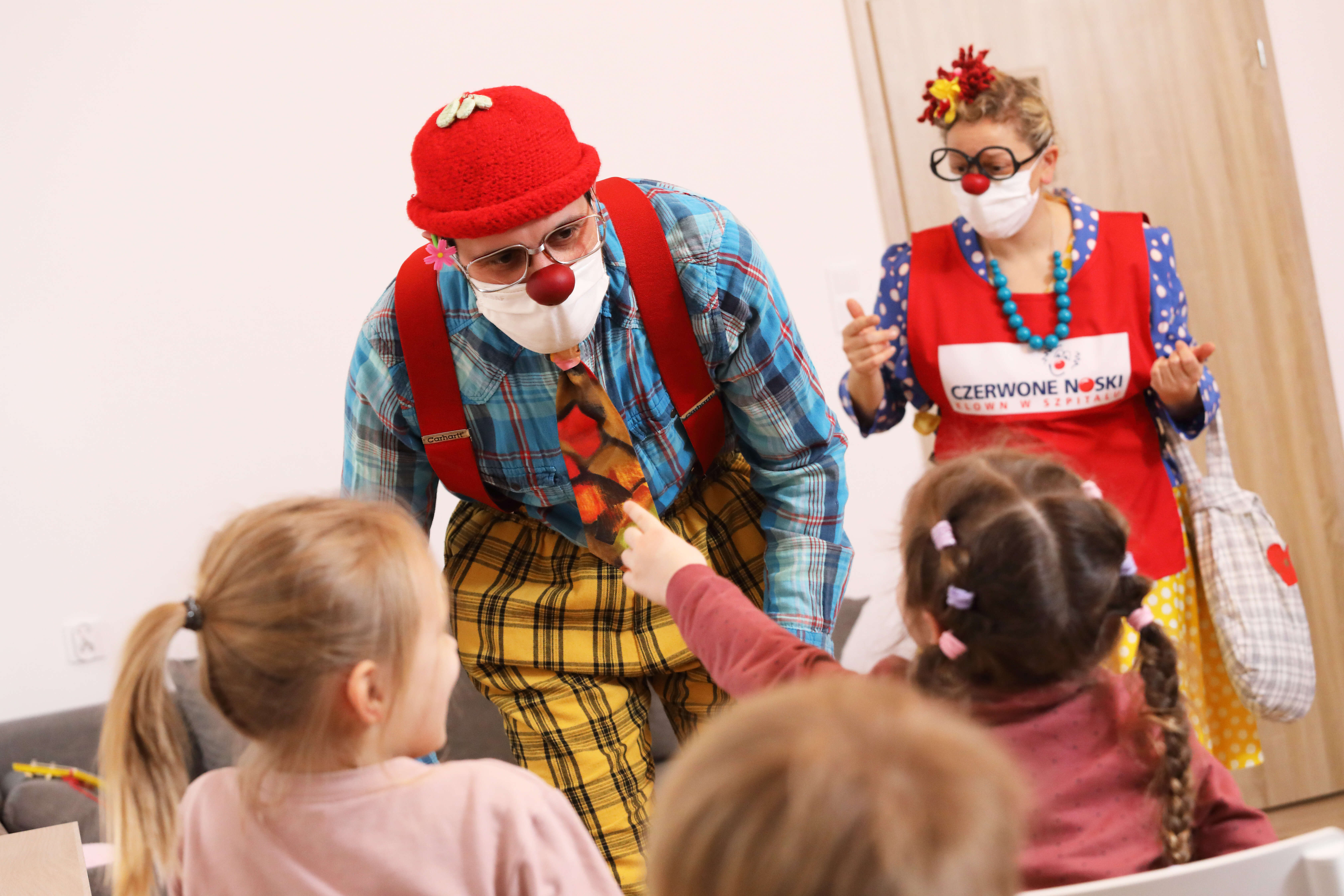 In Polen, beispielswiese in Serock und Białystok, helfen unsere polnischen ROTE NASEN Kolleginnen und Kollegen in temporären Aufnahmezentren geflüchteten Kindern und Jugendlichen aus der Ukraine wieder für einen Moment Kind sein zu können. Auf der Ukulele gespielte Musik, improvisierte Lieder, Teller drehen, mit Taschentüchern jonglieren: Im Spiel überwinden die Kinder leichter ihre Angst.