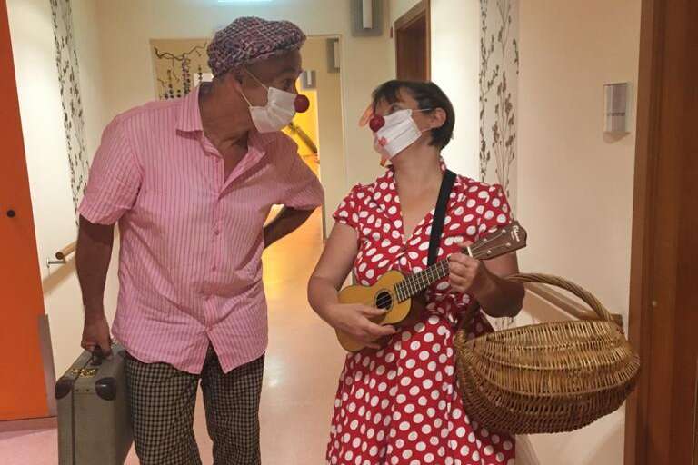 Es ist heiß, gestern hat es wild gewittert. Die zwei ROTE NASEN Künstler:innen Luise Westner und Stefan Palm treffen sich in einer nachdenklichen Stimmung. Der gestrige Sturm hat sie beide etwas aufgewühlt und die Woche ist schon lang. Sie denken darüber nach, wie sie zur Ruhe kommen können und freuen sich schon auf die Visite. Im Pflegeheim in Berlin verwandeln sie sich mit Kostüm und roter Nase in die Clowns Gogo und Stefanello. Die rote Nase verleiht immer eine neue Perspektive und Leichtigkeit.