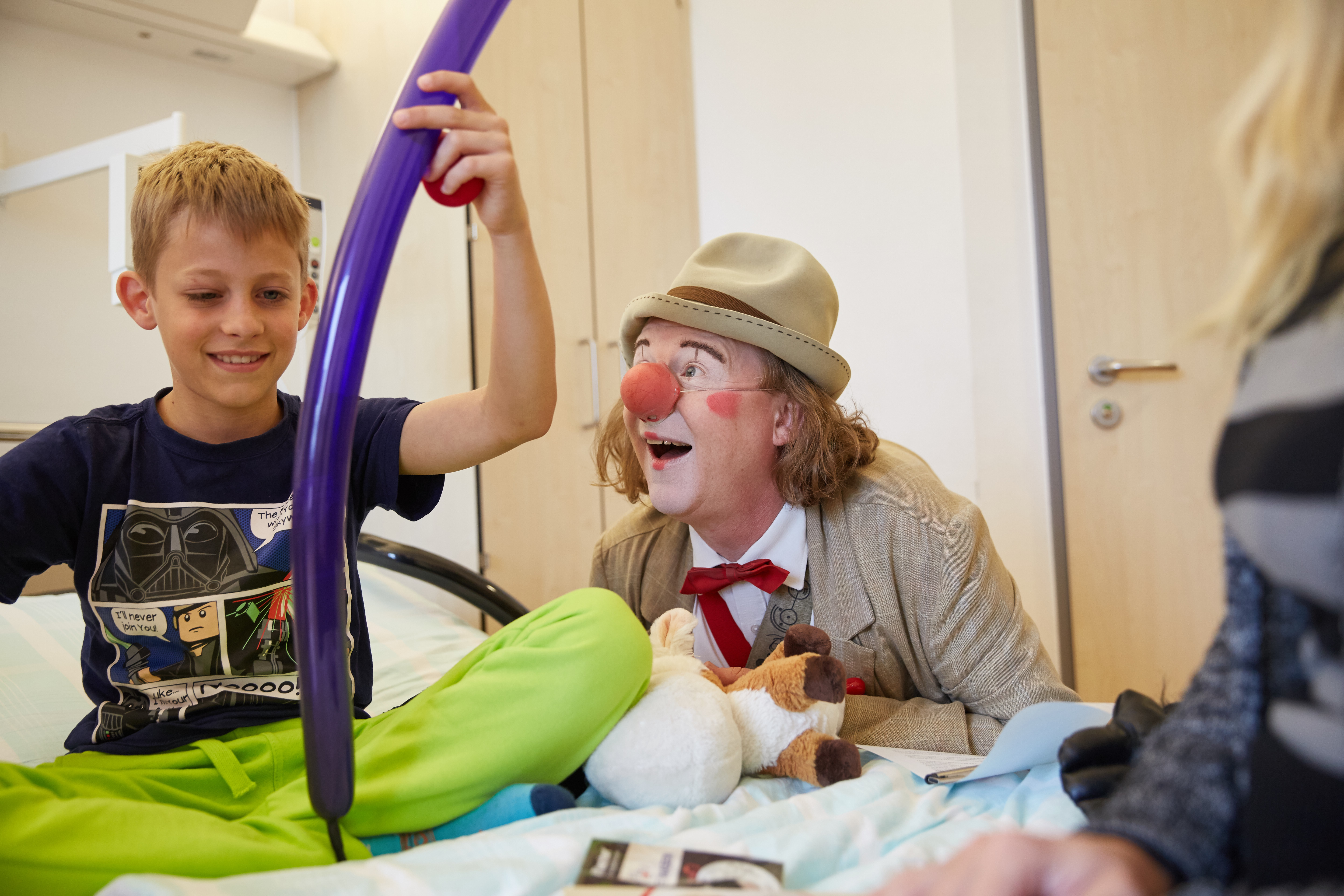 Wenn Kinder Traumata erleiden – und dazu gehören langwierige schwierige Krankheitsverläufe – verlieren sie ihre Fähigkeit zum Spiel. Das was eine Kindheit so leicht macht, fehlt, die Kinder haben keinen Zugang mehr dazu. Und hier können ROTE NASEN Clowns ein wunderbares Geschenk machen. Denn nichts tun sie so gerne wie spielen. Die Clowns laden die Kinder ein zum Spiel und gehen mit ihnen auf eine Reise. Das macht sie stark und glücklich, das was Kinder zu Kindern macht!