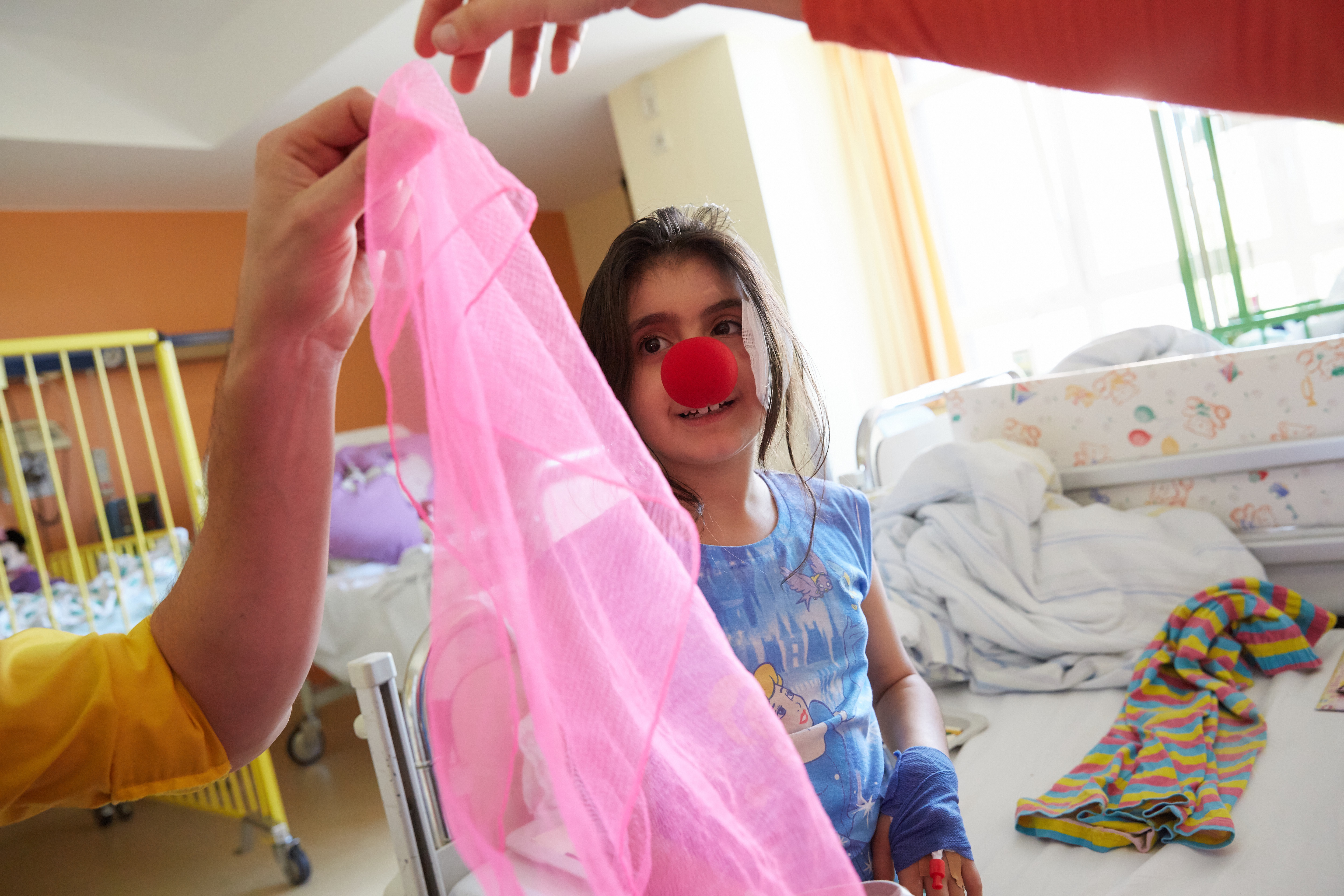 Bald ist Weihnachten und langsam aber sicher verbreitet sich überall eine festliche Stimmung. Auch im Kinderhospiz in Berlin leuchtet schon die Weihnachtsdekoration. ROTE NASEN Clown Leofino besucht gemeinsam mit einer Clown-Kollegin die Kinder in der Weihnachtszeit. Schon beim Öffnen der Tür erkennt ein Junge Leofino von weitem, auch ohne roter Nase. „Du bist der Weihnachtsmann. Du bist der Weihnachtsmann!“ ruft der Junge immer wieder ganz aufgeregt. Dann rennt er zu seinen Eltern, die aus einem der Zimmer kommen. Er erklärt ihnen auf Arabisch, dass dieser Mann, der Weihnachtsmann sei und spielt ihnen die Schneeballschlacht vor, die er vor zwei Wochen gemeinsam mit den Clowns und seinen Geschwistern gespielt hat. In seiner Fantasie war Leofino nicht nur Clown. In Kombination mit dem Schnee war er der Weihnachtsmann. Vor der Clownvisite erfahren die zwei Clowns die traurige Nachricht, dass Rahil*, die kleine Schwester des Jungen, vor einem Tag verstorben ist. Leofino erinnert sich an die schöne Schneevisite von vor zwei Wochen mit Clown Friedel und der Familie und erzählt sie seiner Clown-Kollegin Fräulein Schleife nach der Clownvisite: