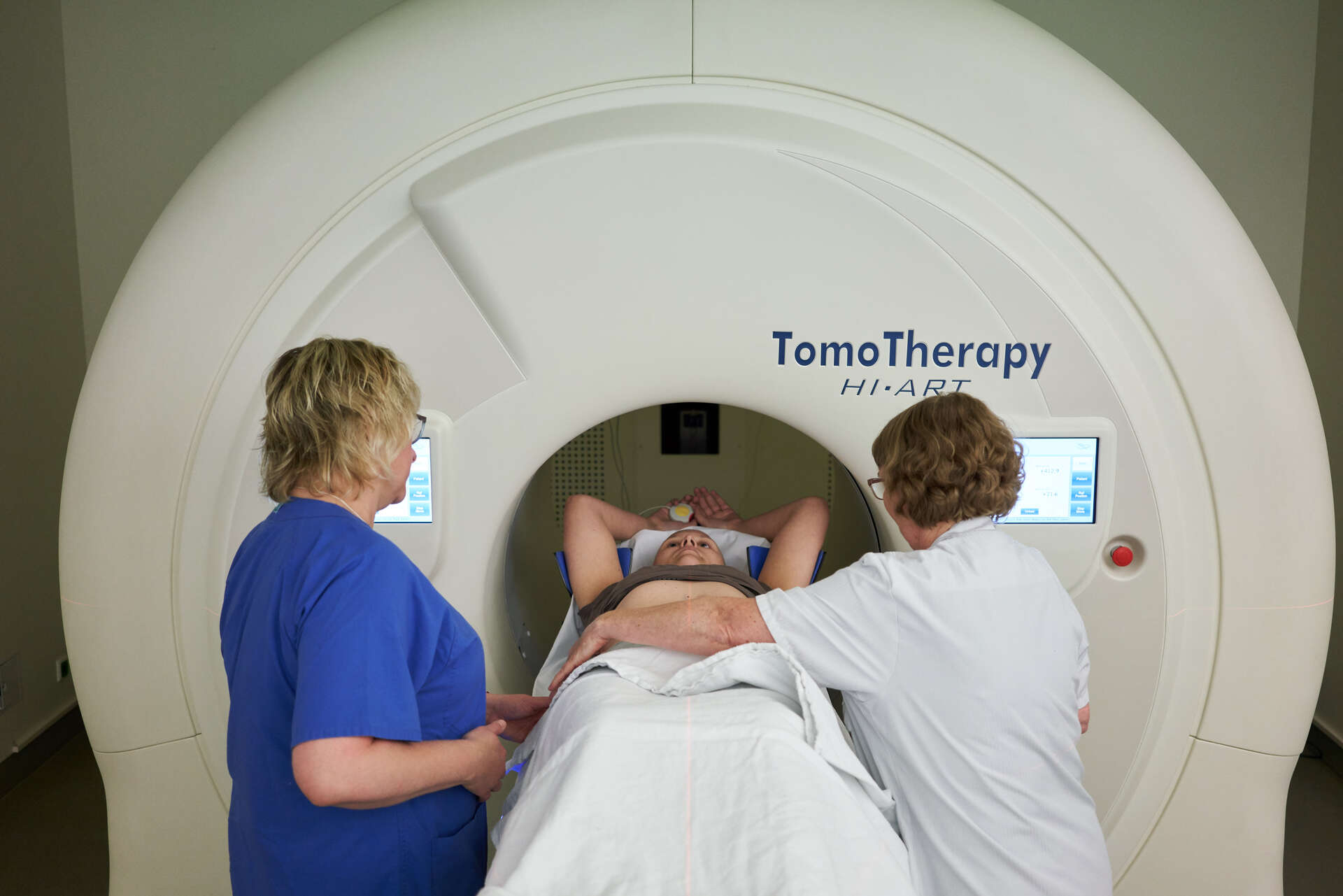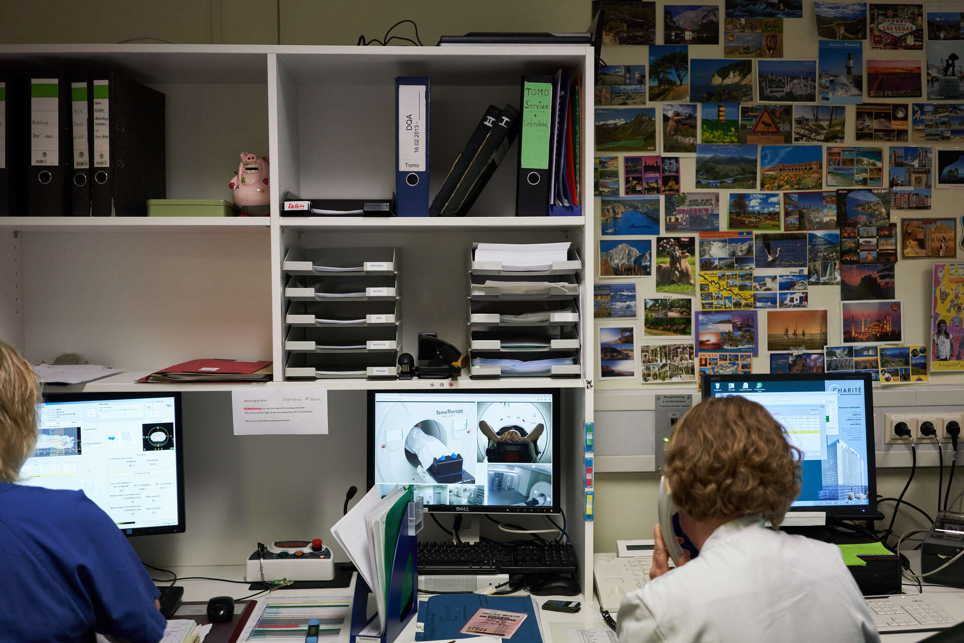 Enlarge photoDie Schwester setzt Marker für die Bestrahlung. Bei Michelles Krebserkrankung können sich einzelne Zellen vom Tumor lösen und über Blutbahnen oder Lymphgefäße in andere Körperteile gelangen.