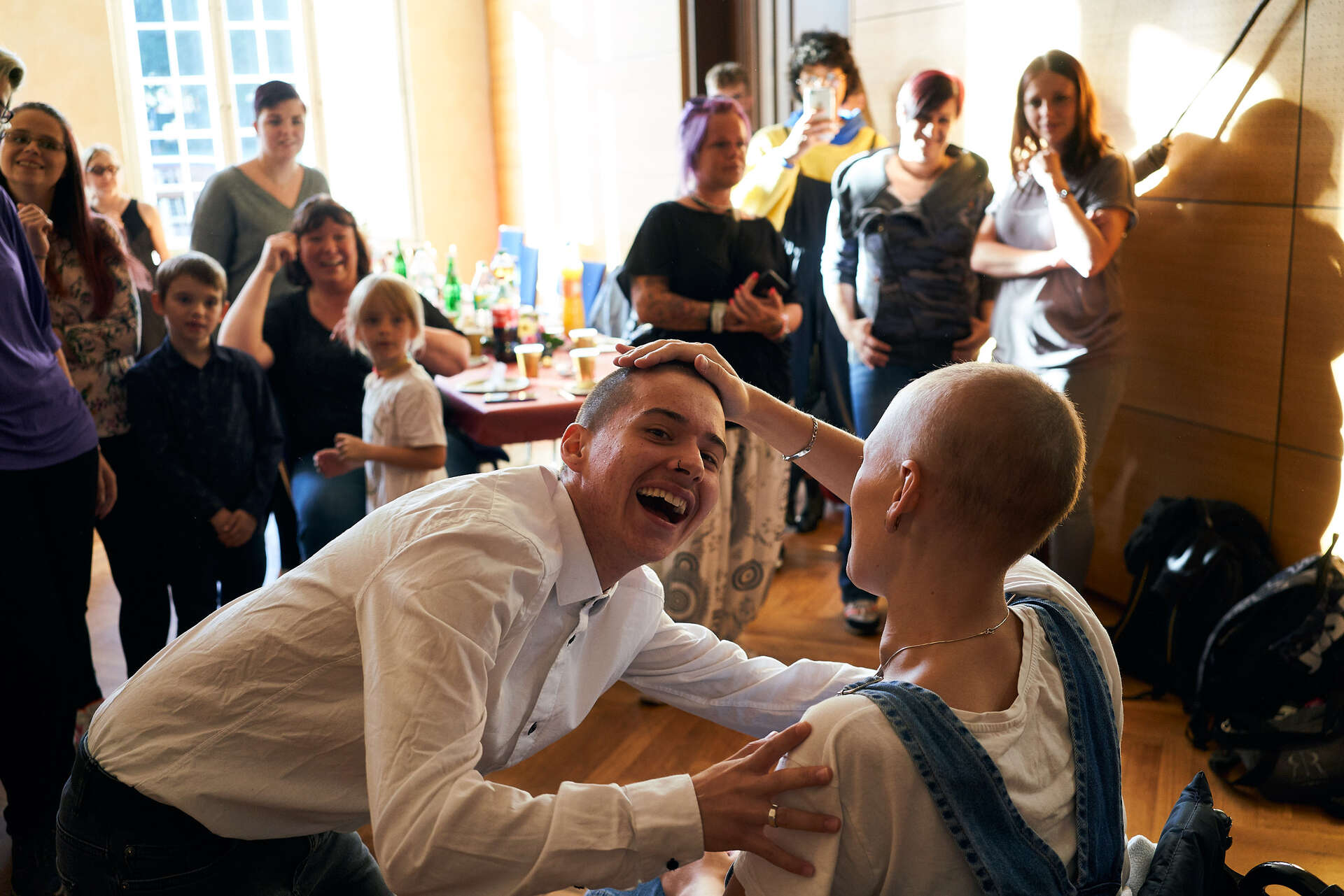 Enlarge photoBasti und Michelle kennen sich schon, seitdem sie Babys sind. Basti hat sich aus Solidarität mit Michelle die Haare abrasiert.