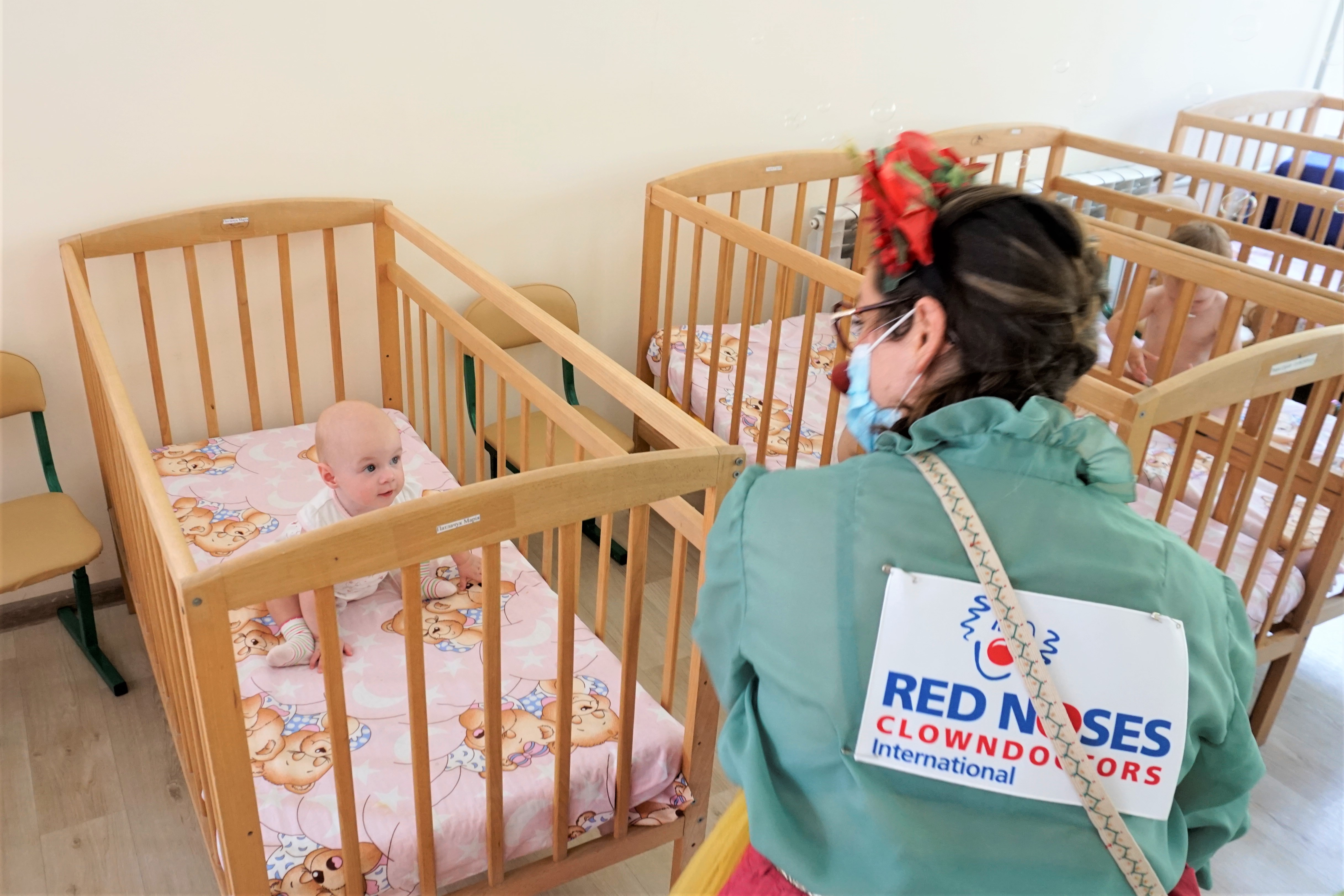 Die Arbeit von ROTE NASEN in Krisengebieten waren 2017 ausschlaggebend für meine Bewerbung als Clown. Ich wollte Menschen in Extremsituationen helfen. Inzwischen war ich mit Notfallteams drei Mal in der Ukraine, außerdem im Flüchtlingscamp Moria in Griechenland, und ich habe an virtuellen Clownworkshops und –shows für Menschen in Bosnien und in der Ukraine mitgewirkt.
