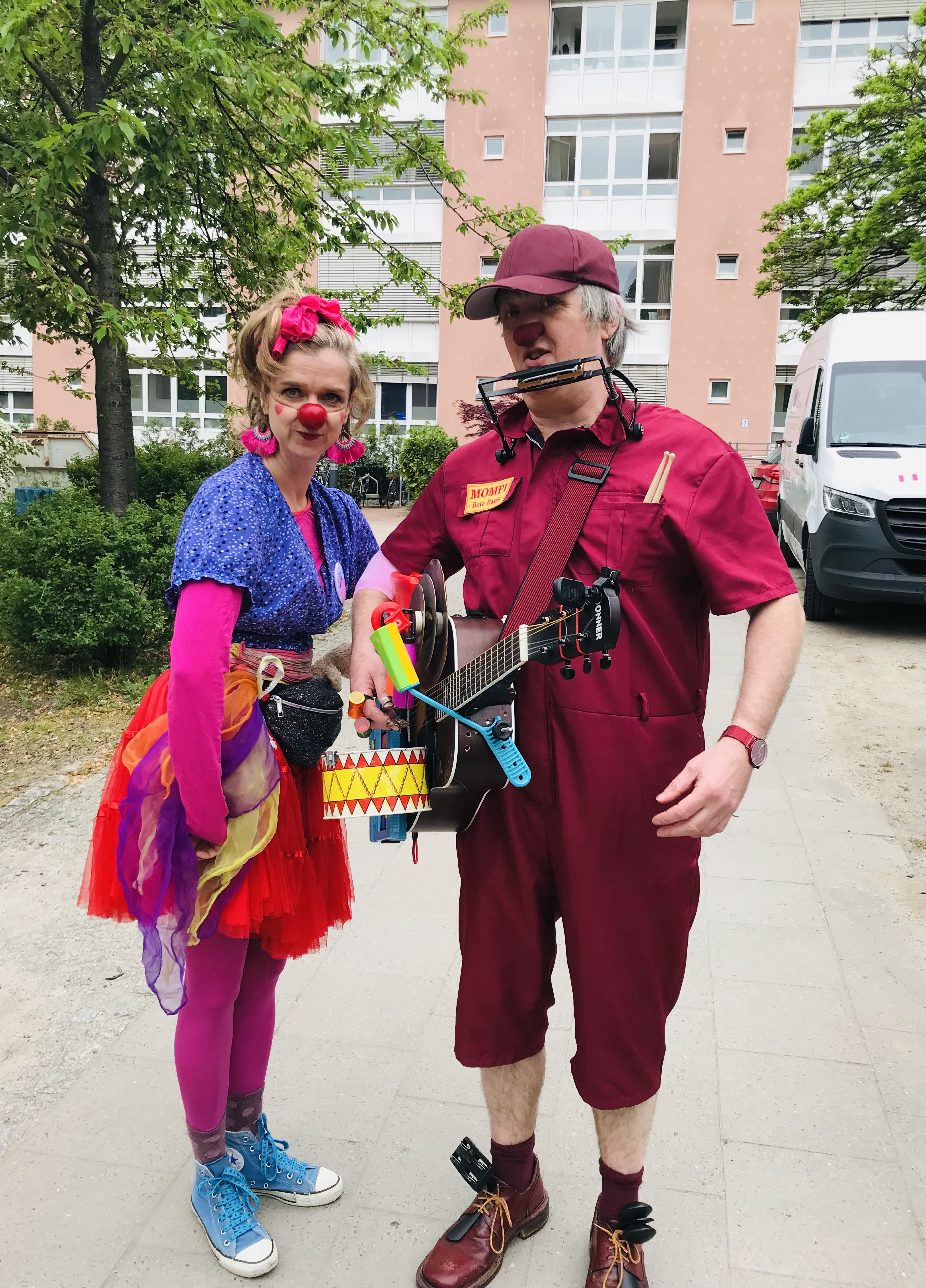 Aus der Pflegeeinrichtung ging es dann direkt auf die Kinderstation im Sankt Joseph Krankenhaus in Berlin. Dieser Dienstag war eine ganz besondere Visite. Der ehemalige Pflegedienstleiter, Gert Plichta, übernahm den Staffelstab von Clown Perdita. Er hat die Arbeit der Clowns viele Jahre dort begleitet und geschätzt und so freute er sich, die Ehre zu haben, mit dem Lachel-Stab symbolisch das Lachen auf die Station zu bringen.