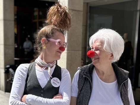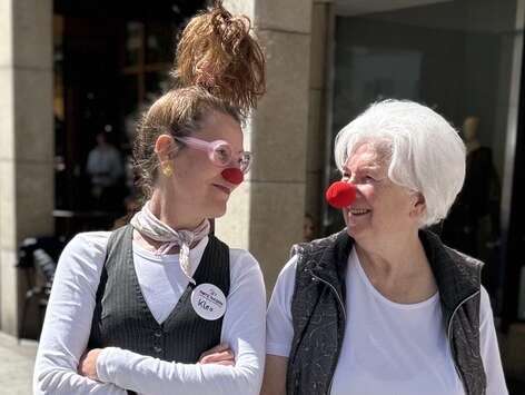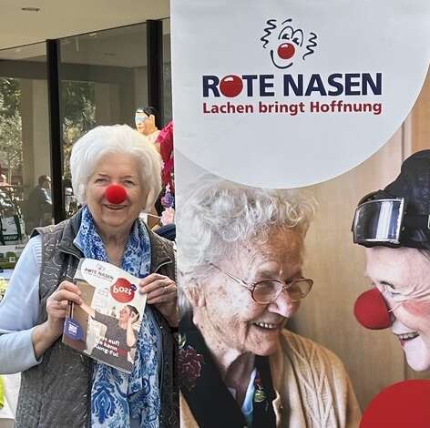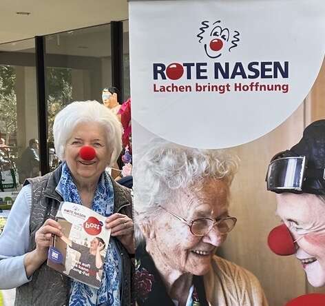 Beim diesjährigen Frühlingsfest war ROTE NASEN Deutschland mit dabei. Eingeladen und ermöglicht hat dies die 88-jährige Frau Ulla Frank, eine Unterstützerin, die die Initiative seit vielen Jahren mit bemerkenswerter Ausdauer begleitet. Sie organisiert die Aktion rund um den Markt, von der Vorbereitung bis zum Abbau, in Eigenregie und hat auch das ROTE NASEN Team eingeladen. Mit von der Partie war natürlich ROTE NASEN Clown Kleo, der dafür sorgte, dass die Marktbesucher:innen mit einem Lachen nach Hause gingen und erlebten, wofür die Clownfigur steht und was es bedeutet, wenn ein Clown in einem Moment der Schwere Leichtigkeit schenkt – genau das, was ROTE NASEN Clowns täglich in Krankenhäusern und Pflegeeinrichtungen tun.