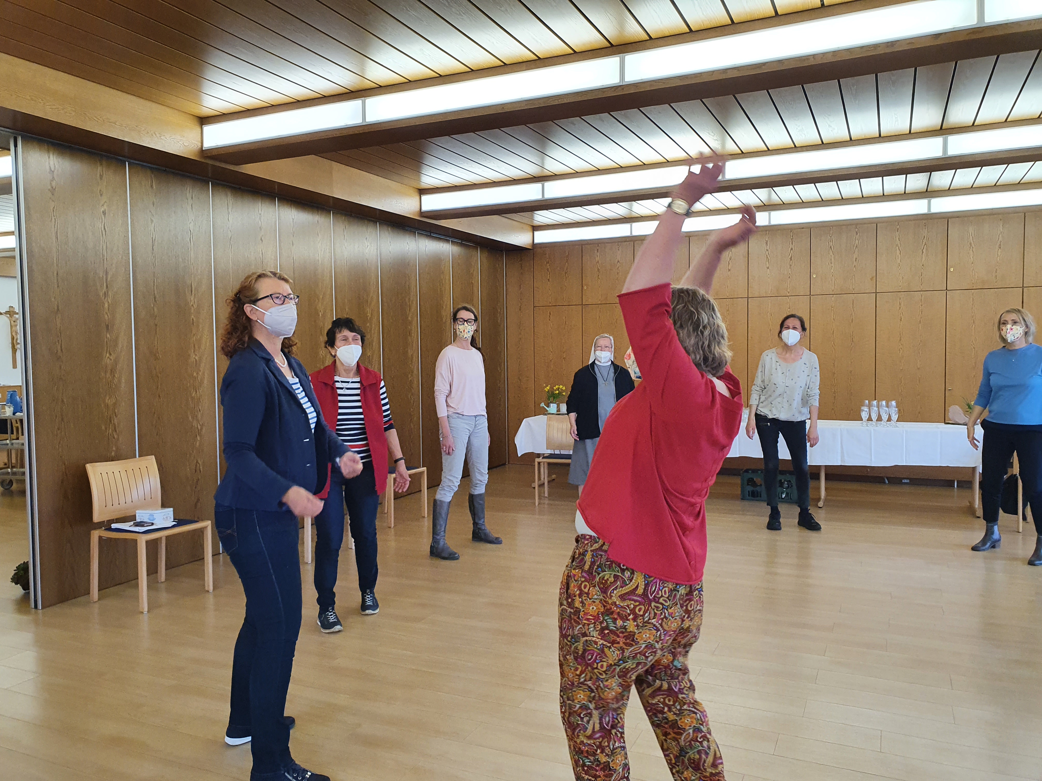 ROTE NASEN HumorAgent:innen aus der Altenpflegeeinrichtung Maria Hilf des Kloster Hegne beim Abschlussseminar der HumorAgenda.