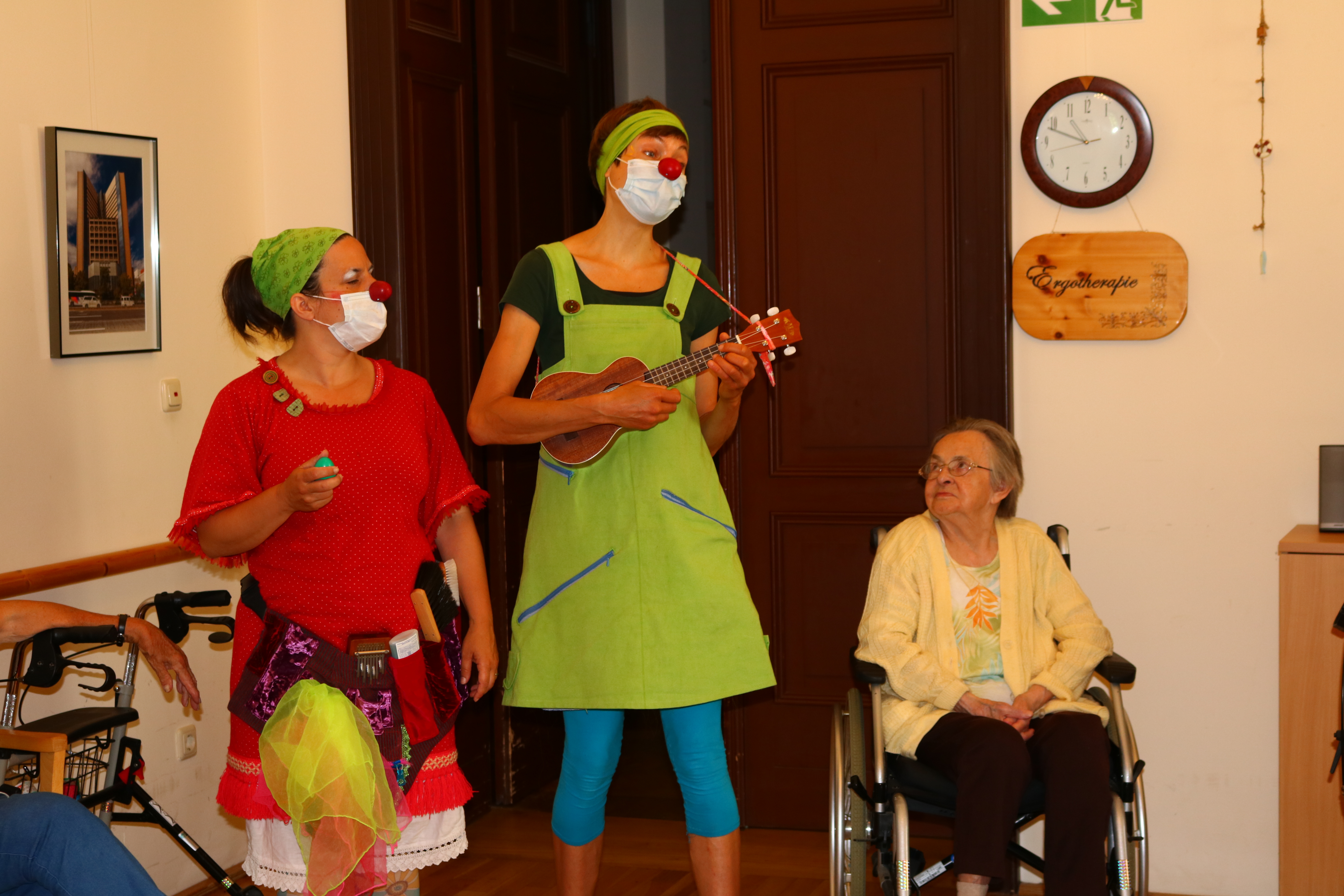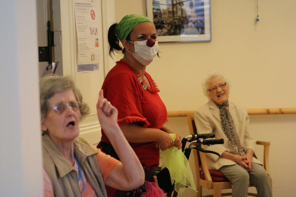 Covid-19 bedeutet für die Bewohnerinnen und Bewohner, dass sie lange isoliert waren. Dass die Clowns wieder in den Innenräumen spielen dürfen, bedeutet nicht nur ein Stück Normalität. Auch die Lebensfreude kehrt so zurück.