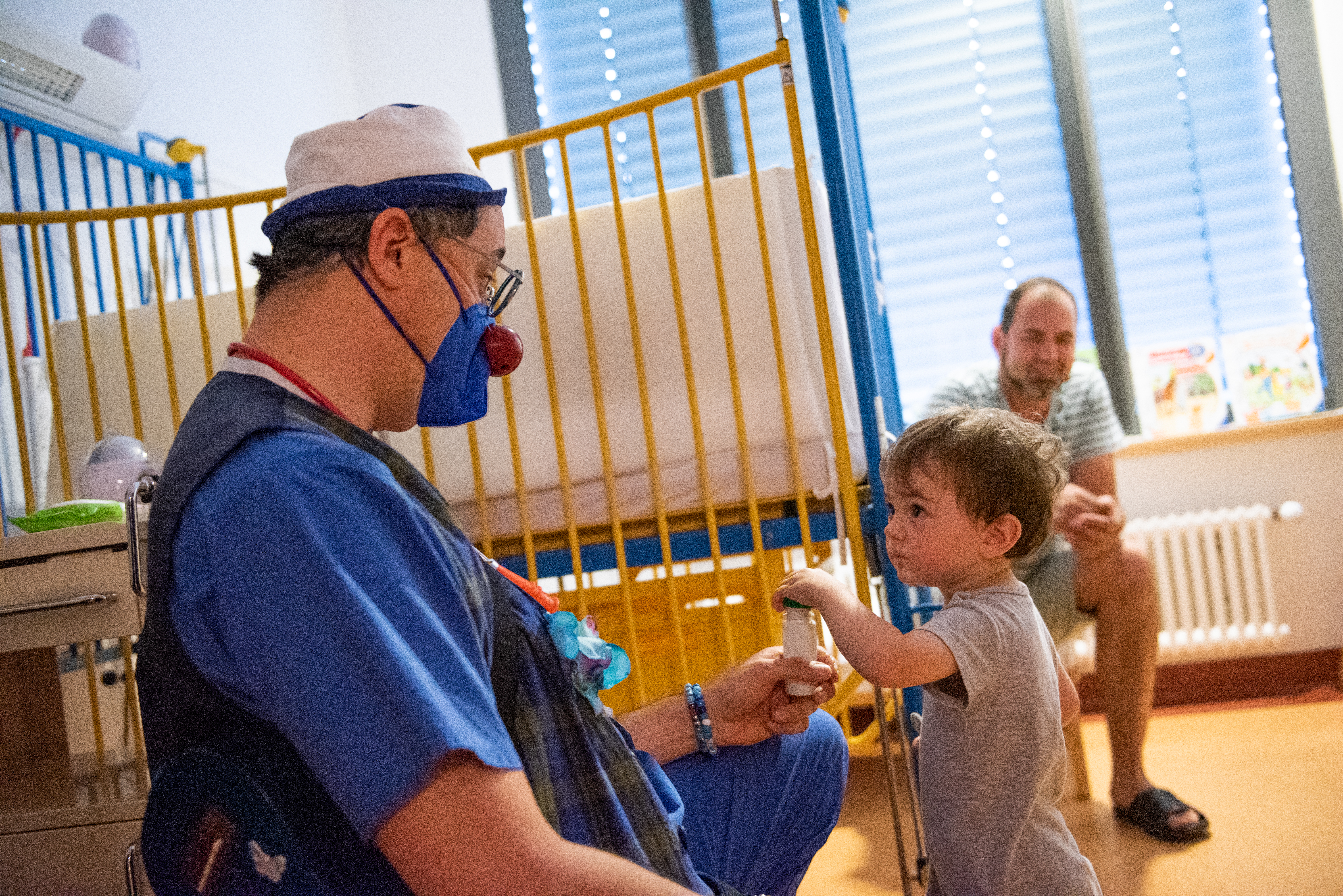 Enlarge photoROTE NASEN Clowns Dr. Meerjungblau begleitet schwerkranke Kinder bis in den OP-Saal.