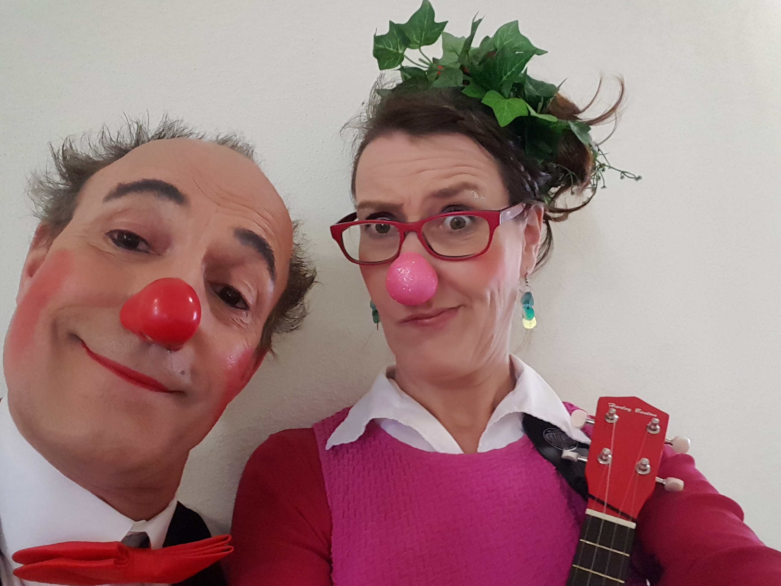 Doch dann kommt auf der anderen Seite ein Junge auf die Glastür zu und schaut die Clowns erwartungsvoll an. Vorsichtig klopft er mit seiner kleinen Hand an die Scheibe - und siehe da, die Tür geht wie von Zauberhand auf! Dank der Zauberkraft des kleinen Patienten können die beiden Clowns nun endlich zu den anderen Kindern, die schon gespannt wartend auf dem Gang stehen. Zum Beispiel ein Junge im Rollstuhl, der schnell herangerollt kommt. Neugierig fragt er: „Wer seid ihr?“ Die beiden Clowns antworten im Chor: „Na, Pipilotta und Pipo Propeller! Wer denn sonst?“ Der Junge lächelt: „Wir haben schon auf euch gewartet! Habt ihr denn auch Musik dabei?“ Na klar: Die beiden Clowns geben sofort ein flottes Liedchen zum Besten, und Pipilotta zupft dazu auf der Ukulele. Immer mehr Kinder kommen mit leuchtenden Augen aus ihren Zimmern heraus und lauschen dem Mini-Konzert der beiden Clowns.