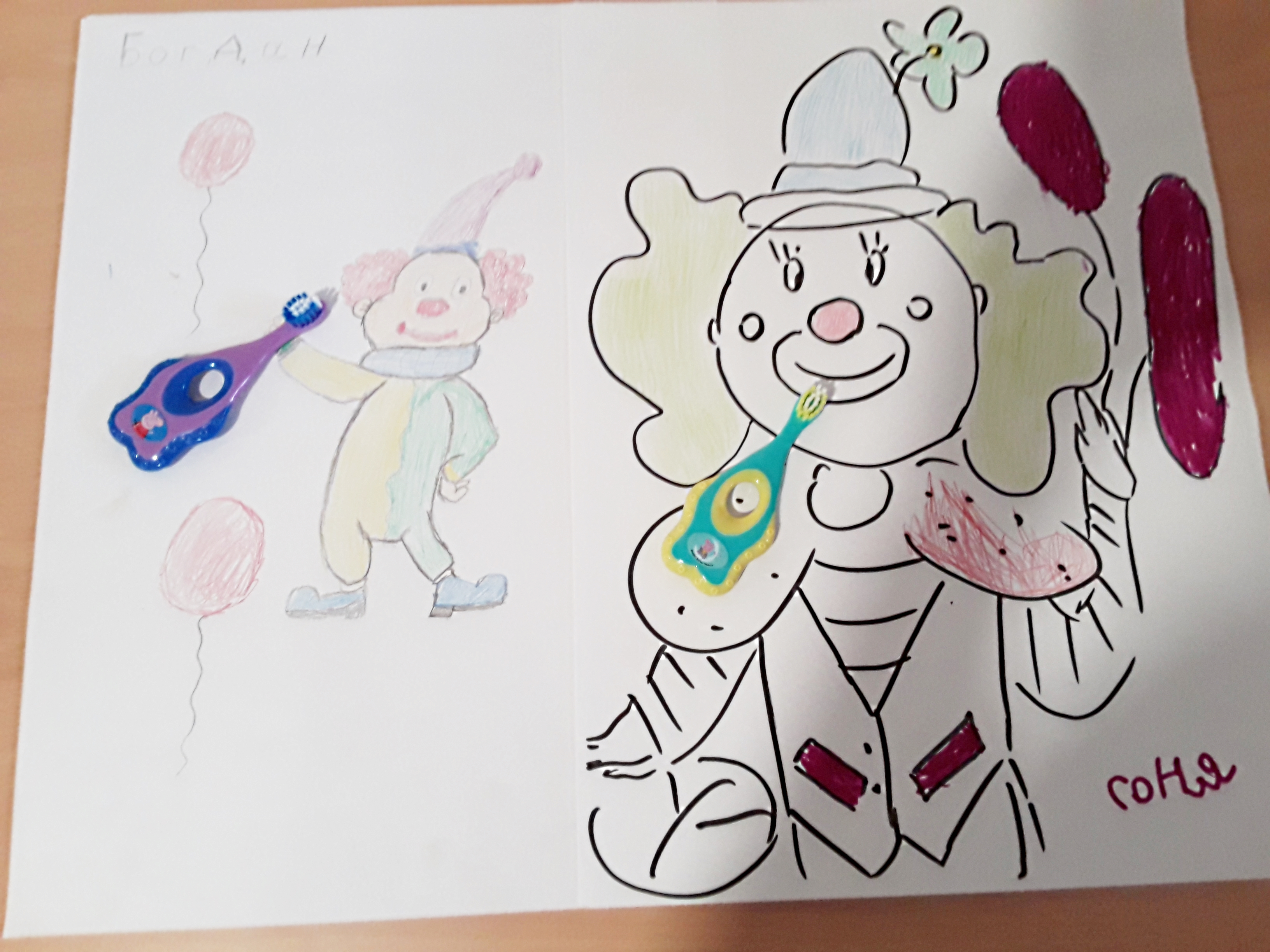 Ukrainische Kinder malen für die Clowns zum Weltflüchtlingstag