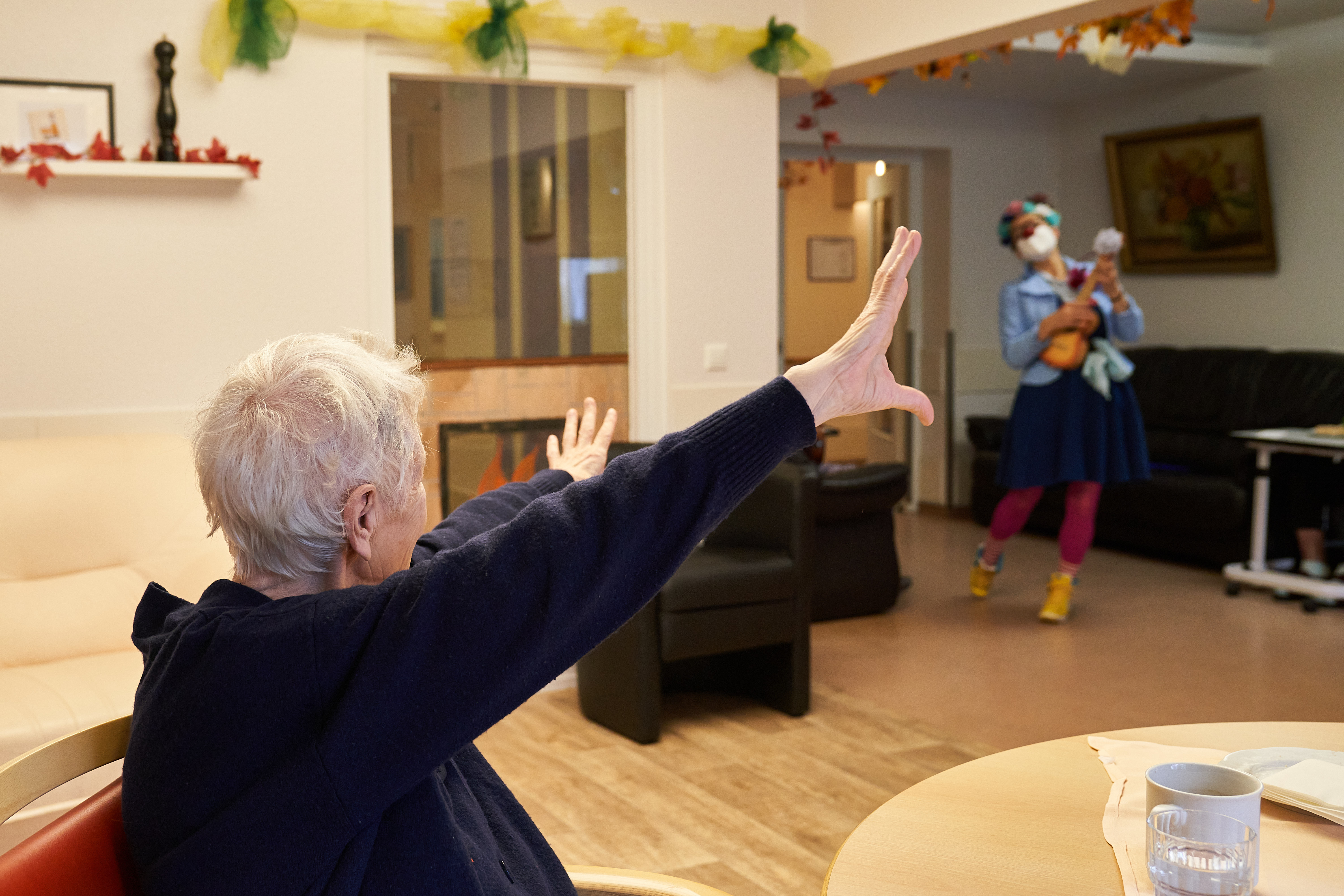 Im Rahmen des Weiterbildungsprogramms ROTE NASEN HumorAgenda® erlernten die Teilnehmenden nachhaltige Humorstrategien, um den oft stressigen Pflegealltag besser bewältigen zu können. Ziel war es, die Sozialkompetenz 'Humor' nachhaltig in den Pflegealltag zu integrieren und so für einen leichteren Umgang mit belastenden Situationen zu sorgen. Eines der wichtigen Inhalte, war es den Perspektivwechsel zu trainieren. Die Gruppe bekam Alltagsgegenstände, wie Schutzhandschuhe oder Windeln, und sollte diese in etwas anderes Kreatives verwandeln. Darüber freuen sich dann auch die Bewohner:innen, wenn plötzlich aus gewöhnlichen Schutzhandschuhen ein blauer Vogel entsteht.