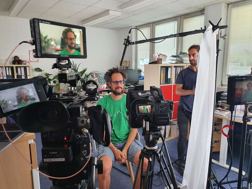 Ein Fernsehteam begleitet unsere Clowns zur Zahnputzshow in eine Unterkunft für Geflüchtete in Lichtenberg