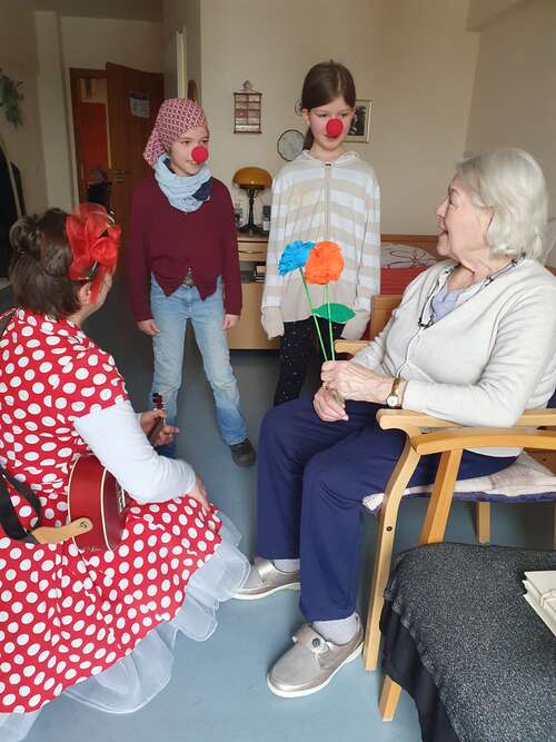 Jung trifft alt - Grundschüler aus Pankow besuchen gemeinsam mit unseren Clowns die Seniorenstiftung Prenzlauer Berg.