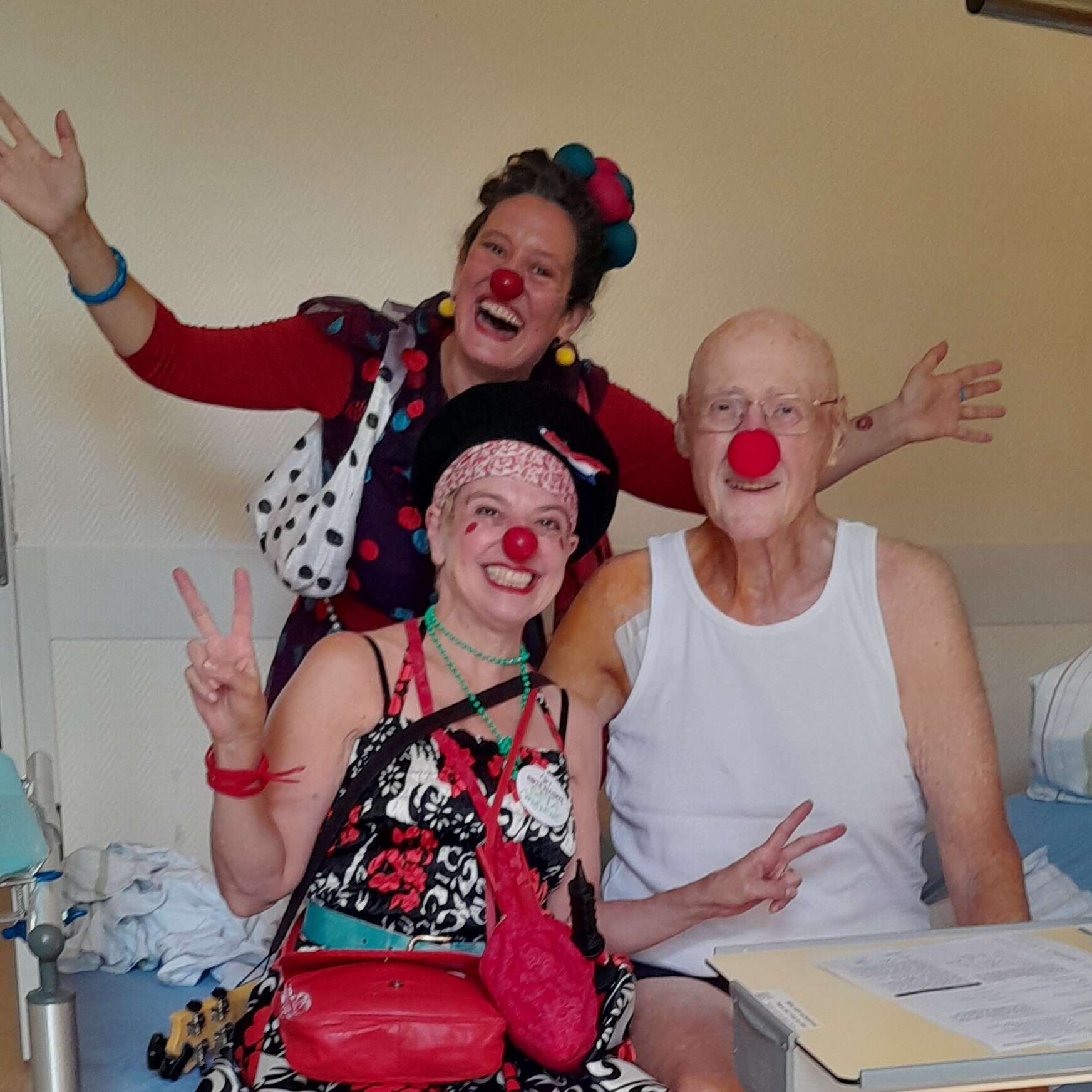Clowns sind doch nur etwas für Kinder - so denken wahrscheinlich die meisten Menschen. Aber können sie auch bei Erwachsenen etwas bewirken, speziell bei kranken Erwachsenen? Seit Juni 2024 besuchen unsere spezielle ausgebildeten Clowns im evangelischen Waldkrankenhaus in Berlin-Spandau auch erwachsene Krebspatient:innen. Was mit einer zufälligen Begegnung mit der Stationsleiterin begann, ist heute ein erfolgreiches neues Format für unsere Künstler:innen.