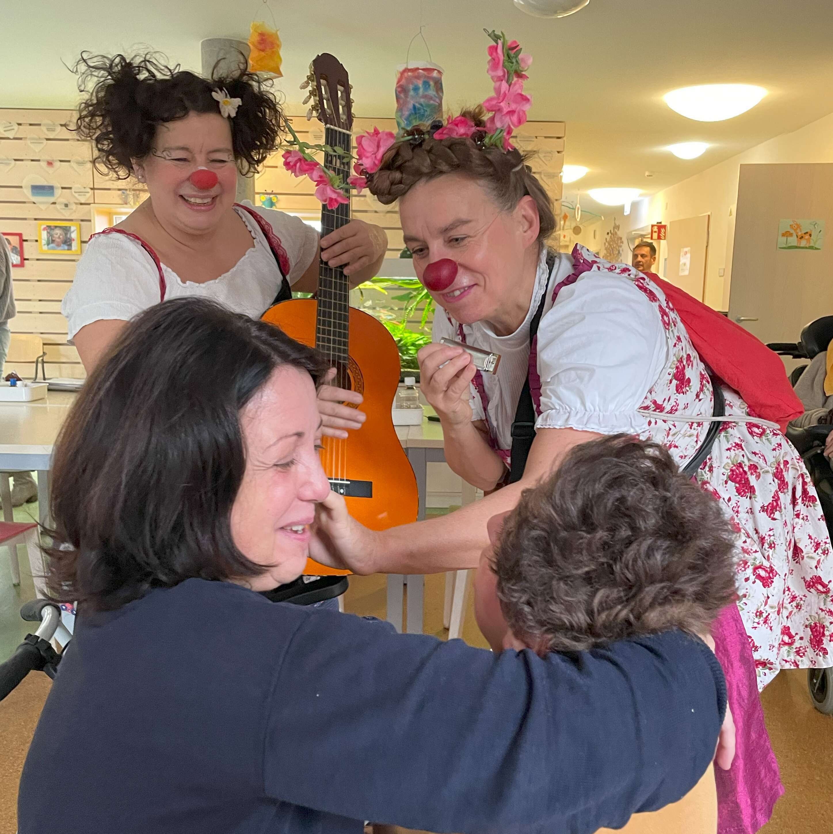 Besonders freut uns der Start unseres Projekts im Kinderhospiz Berliner Herz, wo Kinder mit teilweise lebensverkürzend verlaufenden Erkrankungen nun regelmäßig Clownbesuche erhalten – voller Empathie und Wärme für sie und ihre Familien.