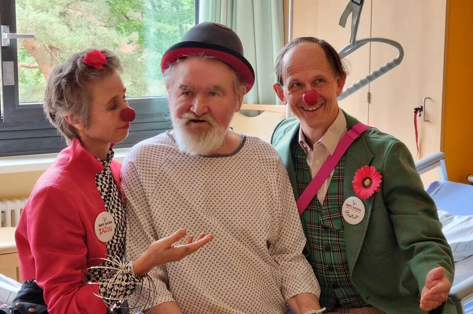 Seit Juni 2024 besuchen die professionell ausgebildeten Clowns jede Woche nun auch die erwachsenen Krebspatient:innen. Aus ihrer Arbeit auf der Kinderonkologie wissen ROTE NASEN, dass die Diagnose Krebs das ganze Leben auf den Kopf stellt. Die Zukunft ist ungewiss und es stehen Operationen und kräftezehrende Therapien an. In dieser belastenden Situation sind unbeschwerte fröhliche Momente sehr wertvoll und da kommen die Clowns ins Spiel - im wahrsten Sinne des Wortes. Mit Leichtigkeit und Humor erinnern sie die Patient:innen an ihre Ressourcen und vermitteln dadurch Hoffnung, Stärke und Zuversicht.